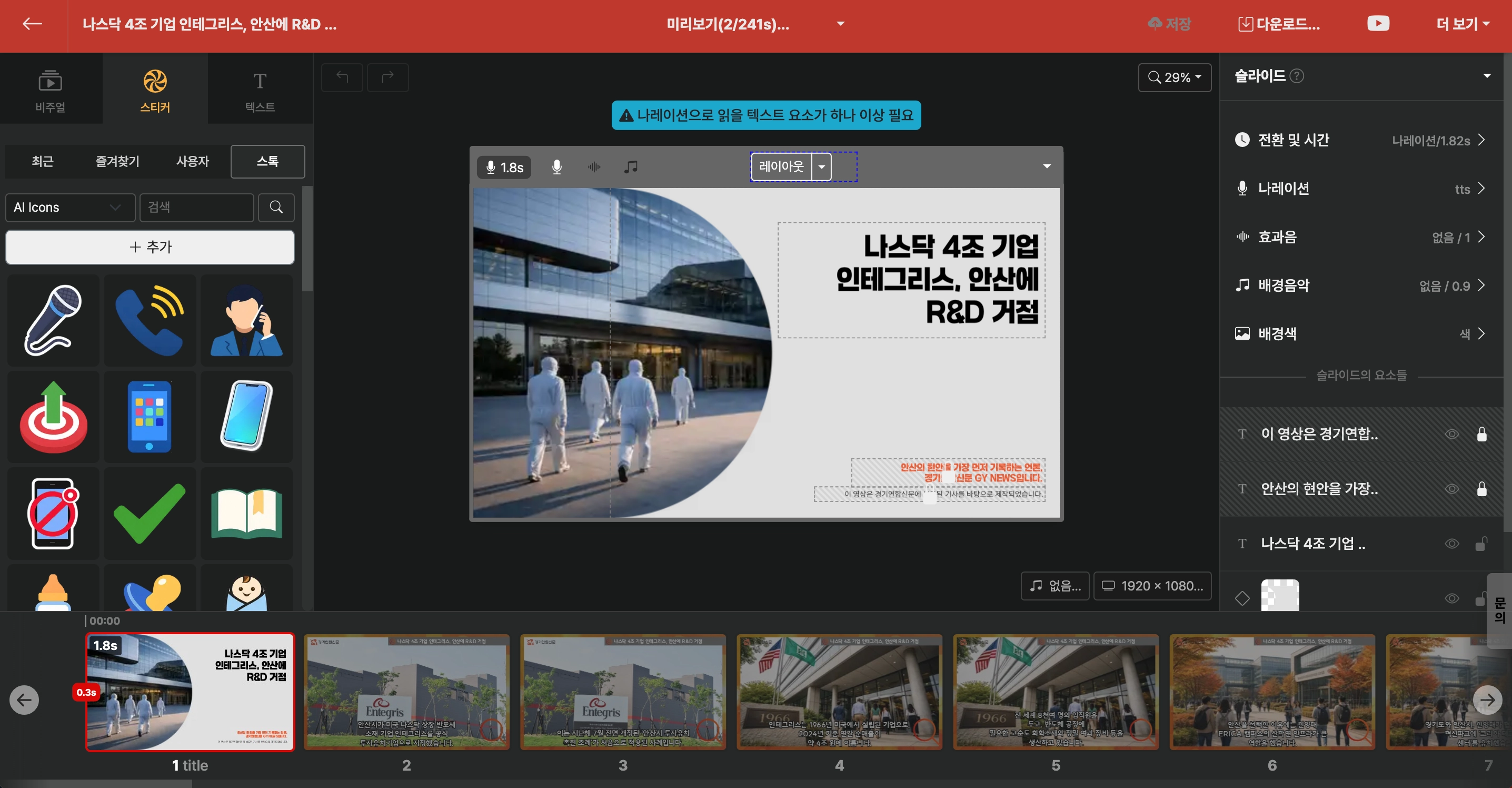 A. Unfortunately, there aren’t many Korean background clips available on overseas stock sites. If you have your own footage, that’s always the best source. If not, a more realistic approach is to use text-based AI video creation tools so you can rely less on stock footage in the first place. (Of course, if you have enough time and budget, you could generate each context-friendly clip using generative AI tools like Veo or Kling 😄)