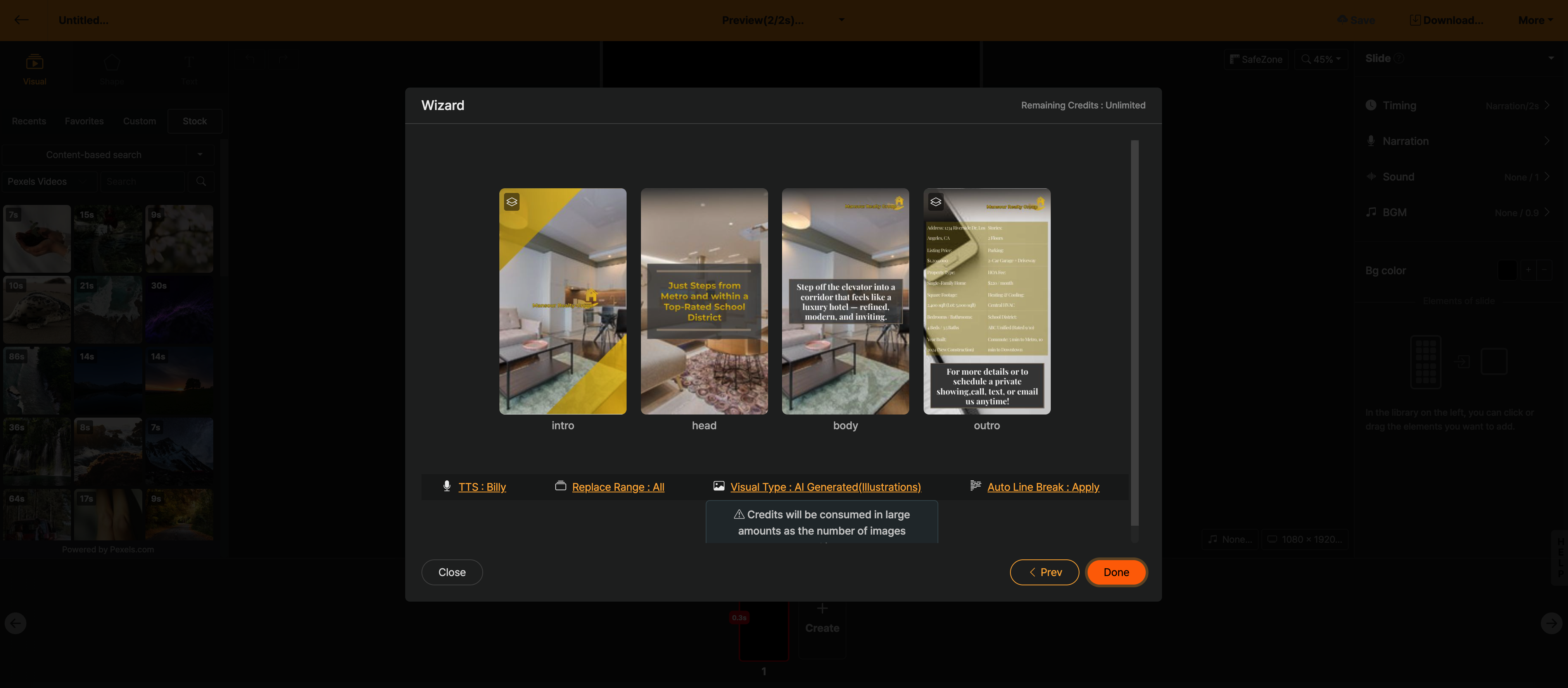 You can end wizard mode and start working directly in the editing screen. It is useful when creating intro and outro videos using Auto Animation or Language Learning Videos.
